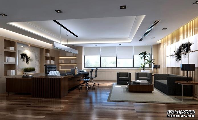 办公室设计中的光线来源有两个方面,一个是自然光线,一个是室内人造光线。人造光源又可分为两大类,即白炽灯和气体电灯。白炽灯靠电流将灯丝加热后转化为光能发光,所以又称为热辐射光源;气体发光灯顾名思义靠气体激发出光,没有灯丝等发热体,所以被称为冷光源,如荧光灯、高压钠灯、金属卤化灯等。办公室装修中灯具常选择荧光灯,并有金属栅格作为灯罩安装在顶面天花上。
