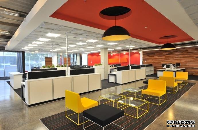 开放办公空间是人流最大的地方,在色彩上应该具有统一性,统一的色彩也是表示一个团队的团结统一。办公室装修设计在开放办公区选择配色的时候,最好用相同色系的比较合适,这样能取得最好的效果。