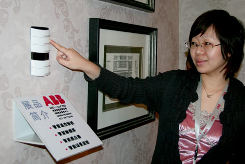 在这个中国之家中,最引人注目的是一个智能家居控制系统。系统提供商ABB公司工程师王大江向记者演示,通过触摸控制面板,业主可以轻松智能控制自己的房子。例如,选择睡眠状态,所有室内照明将关闭,窗帘将慢慢自动拉起;选择多媒体,室内照明将调解到合适的亮度,背面屏幕将自动放下,并开始播放多媒体;该面板还可以提供家庭信息功能……转眼间,科幻电影中的桥段进入了现实生活。