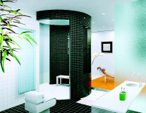 卫生间的设计,在平面功能确定的情况下,主要通过 墙砖 地砖 的形式与色彩来体现整体的风格。如图:整个卫生间的调子就是黑与白的对话,整体的统一是确立在这种强烈的对比之下,给人一种干净又充满理性的感觉。黑色所占的比重是很小的,却是画龙点睛之笔。