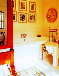 在这里你不仅能够得到全身的放松,更有着视觉上的享受。一组白褐相间的方形小 地砖 嵌在六边形的白色 地砖 中间,体现了设计师的别具匠心,而墙上这一幅幅精美的饰品打破了卫生间四白落地的传统,配合着浴室淡雅的色调,赋予了这里独特的风格。