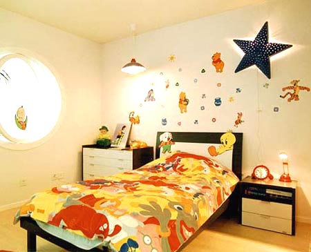 儿童房里可涂鸦。儿童房里贴上卡通墙纸,可以营造可爱的氛围。但孩子的兴趣变化很快,不久他就可能不喜欢这些卡通画了。涂鸦是孩子的天性,不如留下一面墙让其涂抹。过段时间用遮盖力强的涂料一刷,就又成了新墙面了。那时,孩子的画技可能也进步不小了。