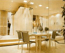 明镜之于室内设计,应该处于何等位置,要视情况和所需的效果来决定;如果是用于扩大室内空间感,就可利用镜子覆于整片墙面之上,上至天花板,下至地面,使居室中所有家俱摆设皆反映于镜面,如此一来,空间在视觉上便明显增大一倍;如果是只当成点缀用途就可把镜子配上不同材质及花样的框边挂于墙上,镜中出现的影像就像一幅活动的景画,随着不同样貌,产生不同感受与联想;而如果两两相对的左右墙面同时覆盖镜子,此时则会因两面镜子互相反映,而在视觉空间的深度便会无限延伸,但因太过深远,容易有不着边际和缺乏安全感,通常狭小的参馆才会有这一番设计。