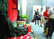 墙上横放着一张红桌,“僧侣”正在“打禅静坐”。