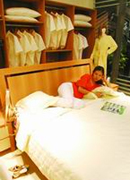 设计:但空间求少的极简摆置方式转向了适度处理,力求舒适感,是又一特点。从更加实用的角度出发,直接在床具上就加入床头灯、可折叠靠背等,增加了床具的功能性。