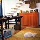 二楼的亮点有两个,一个是装备现代的视听室,音效自不待说,大背投也收放自如,妙的是男主人在前面看背投,程潇在其后的大方案上工作,那景象让我想起了垂帘听政。用来照明的居然是些灯笼,程潇专程从东南亚带回来的。视听饕餮倒也罢了,现在做什么都要多听多看。可主卫的奢侈充分暴露了主人对舒适生活的“贪图”,进了程潇家的主卫就像进了芬兰丛林里的桑拿房,而且里面有芬兰桑拿房里不常见的液晶电视和两个小音箱高悬,一按遥控器,你想看大海看大海,想看沙漠看沙漠。关于猫咪洗澡的问题,主人专门在另外一个客卫里装上了猫澡盆,可不是什么塑料的,绝对是名牌。程潇有个人生哲学是让自己舒服,别人也高兴,我想还应该加上使猫咪乐意,那么回过头来再看这栋房子,主人猫咪开心不说,朋友们也喜欢隔三差五来小聚,在这样的House里,程潇实现了自己的三大爱好:和家人相聚、和朋友聊天以及布置自己的家。