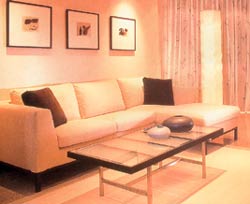 混合材质的茶几用颜色呼应 沙发 及靠垫,简单而不单调。