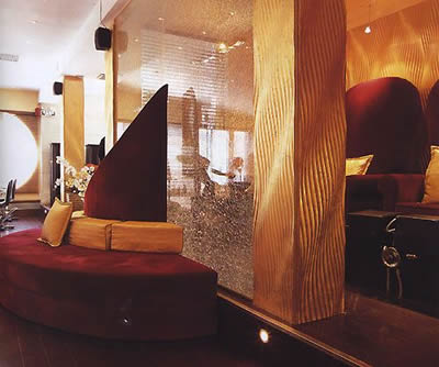 红色丝绒和金色波浪共同构成这里的华贵感。
