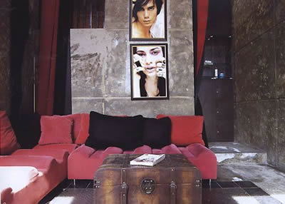 这个房间选用了带有嘻皮风格的现代 沙发 ,红色和黑色的简单搭配和这里的另类感觉十分契合。