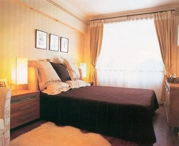 色彩相对单纯的卧室织物质感有所不同,浪漫与温情通过点亮的灯光透射而出。