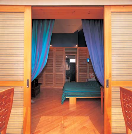 图:室内大量本色木制家具的使用,既是主人的偏好,也是用来协调色彩结构的元素。
