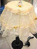 在某布艺店内,摆满了蕾丝纱或蕾丝布的 窗帘 、可爱的洋娃娃、色彩丰富的 台灯 饰品,还有各式各样的玩艺儿,像西式灯、篮子、储物箱……给人带来浪漫和惊喜。在家中玄关处摆放一面蕾丝花边的镜子,出门前梳理整齐,既美观又实用。看那个披上外衣的化妆盒在娇滴滴地向你撒娇。有蕾丝花边的灯饰体现华丽风情,最适合在客厅摆放,尤其是搭配布艺的 沙发 。这里的蕾丝西式灯罩都是精工制作,每件都好像在量身定做宫廷礼服,直立的灯饰也好似正要参加宫廷舞会的贵族,这样的灯饰为客厅增色不少。