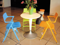 塑料的可塑性极强,可以加工成任何形状,同时它色彩丰富,极易和 其它 家具搭配。比如在小空间里,选几把色彩丰富、 线条 流畅的塑料座椅,点缀小空间,可让家庭气氛更活泼,甚至可以说更艺术;塑料椅面和金属椅腿结合,是设计师的常用手法。