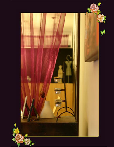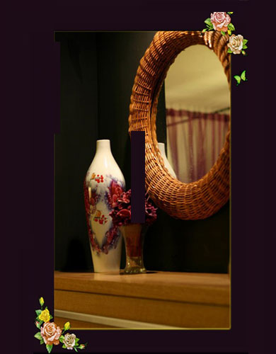 竹子装饰的镜框和瓷瓶的感觉很对味