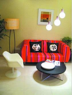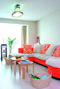[会客区]这里的每一样家具和摆设都是家具店里最常见的,可是,当他们安静的靠在一起,就成了这首曲子最完美的部分。红赫条纹布艺 沙发 带有女人的娇艳和男人的内敛,张扬中舒缓着沉稳。永恒的黑白配似乎也成了线谱上的音符,白的担任靠椅,黑的圆形小茶几,视觉对比的冲撞中带出了旋律般的美感。在固有在美丽中,是 沙发 后探出头来的绿意赋予了乐曲生命,生活的气息,就在这不经意的目光所及中弥漫。