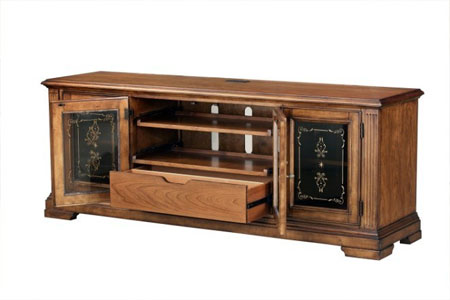 例如,有遥控升降功能的电视柜,在不看电视的时候可以将电视完全收藏与电视柜内,不但美观还很防尘,是古典与现代的完美融合。特别设计的DVD抽屉,面板镶嵌玻璃并且可以翻开,方便遥控操作。专门的电源插座安全空间,更显微妙。