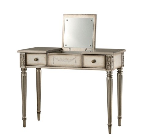 精巧的梳妆台在厚度和高度上均做了调整,特别适合中国家庭的需要。造型优美,体积纤细,手绘图案和手工雕花相映成趣,不易损伤的大理石贴面面板中间可翻起,内置镜子和首饰盒,方便收纳使用。搭配同样优雅精致的低靠背座椅,成就了艺术和现代生活的珠联璧合。