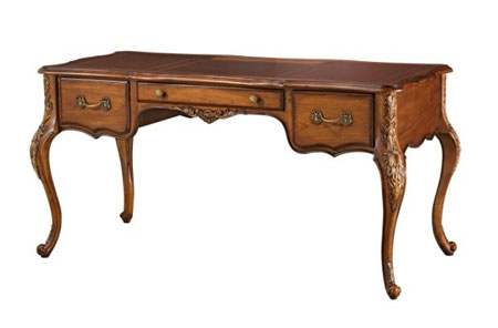 书桌兼具柔美的外形和强大的现代化生活功能。有节奏感的雕花设计体现高贵气质,仿皮的面板柔软舒适,加入电源的收纳之地,整洁利落。