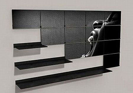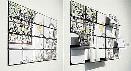 墙架可以翻下来,就成一格格的隔层;没有翻下,就宛如一幅画挂在墙面上。