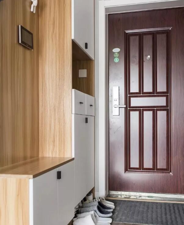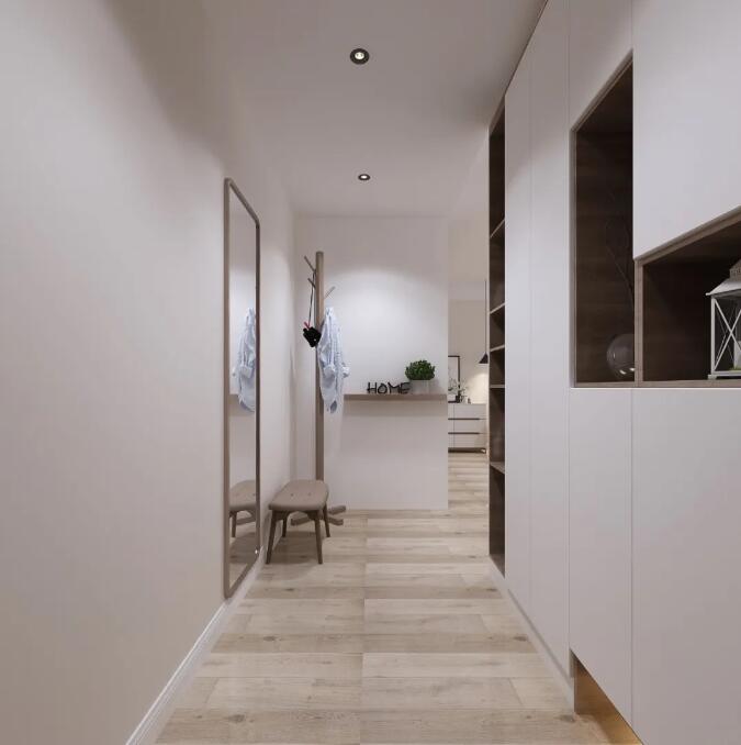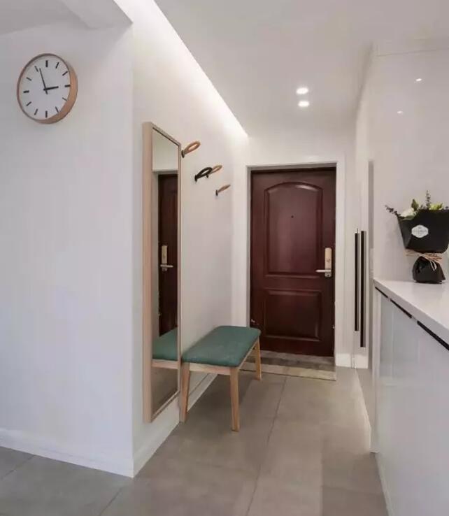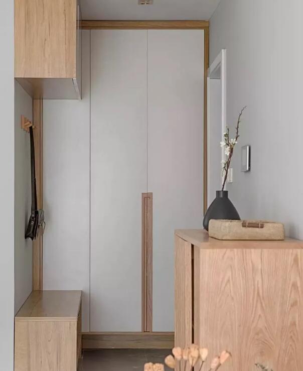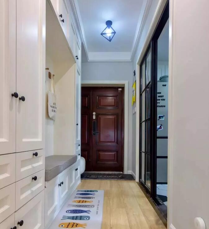 鞋柜内嵌有一些灯,做灯带、筒灯等辅助照明,对于采光不好的玄关走廊,这样设计会更实用。
