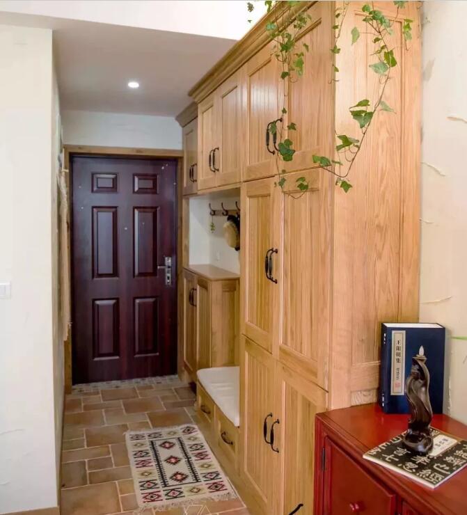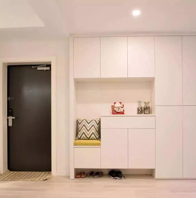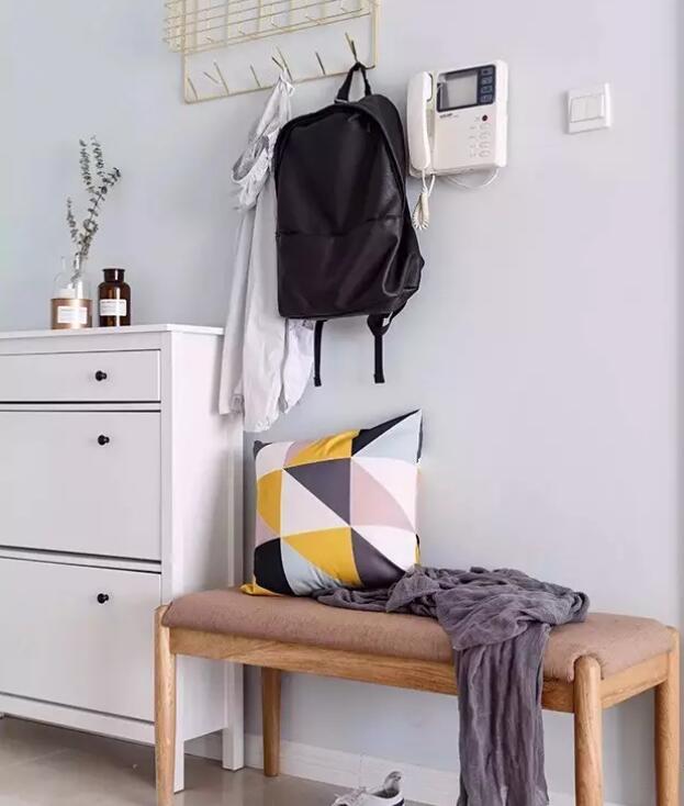 摆个独立的换鞋凳是比较方便的方法,适合已经装修过的家庭,买个高价值的短凳作为换鞋凳。