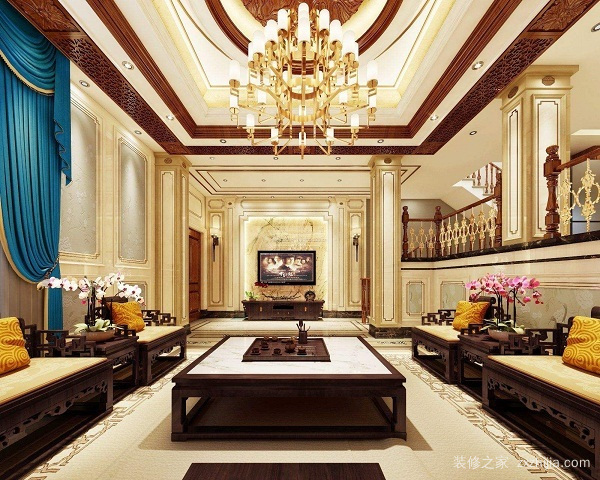 5.顶灯盘或壁画,欧式绘画多为基督教。欧式藻井天花板有更丰富的阴角线。一些欧式天花板也常用木材,如地中海和殖民风格。