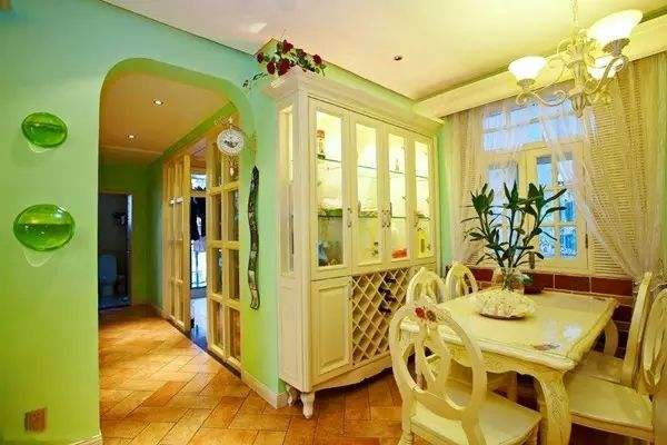 4、新空间装饰设计风格-美国田园:美国田园风格更注重简单休闲,倡导自由,体现为简单、休闲、绿色植物、藤餐椅、空心装饰、优雅舒适,木制家具保留木材本身的自然纹理,刷有光泽的油漆,窗帘面料在自然界中,色彩自然条纹或纯白纱,风格简单,自然清新。