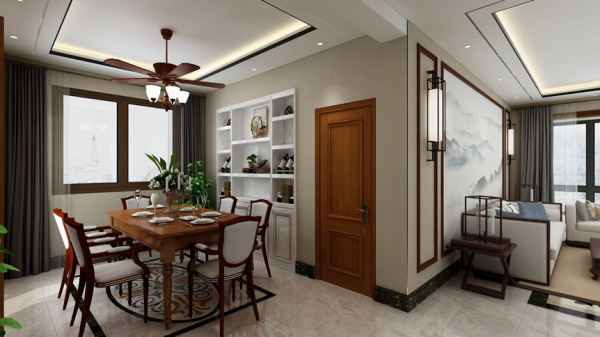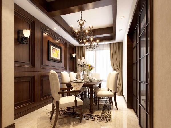 3.餐厅应该简单明亮。在这个区域的材料选择中,最后一个很容易清洁,风格也很简单。否则,人们会感到沮丧。色调温暖,使用中等色调,不建议使用非食用色素。还建议用灯光营造宜人的用餐氛围,如以伸缩枝形吊灯为主灯。