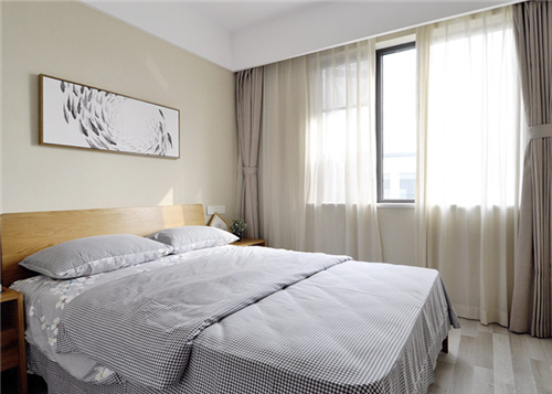 卧室是我们睡觉的地方,所以我们不必太豪华地装饰它。简单舒适,如图所示。浅灰色窗帘、方形床单和优雅的装饰画在墙上营造出简单优雅的生活氛围。实木床和床头柜给人一种自然的温暖。