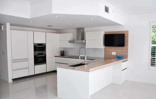 开放式的厨房装修,记得要考虑电路安全问题,一定要远离燃气线路、电源线、网线和水管都要从低下连接。开放式厨房虽然很多电源插座,不过最好能隐藏在电器或橱柜的後面,否则影响美观。