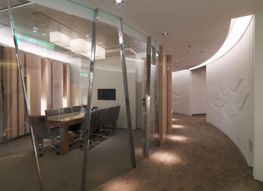 ⑦利用界面形的变化,对构成室内空间的三大界面进行装饰,改变原界面的平整、单调,使其具有凸凹、高低、曲折的变化。这种方式运用在室内空间调整上可在同一空间限定出不同的区域,增加空间的变化。